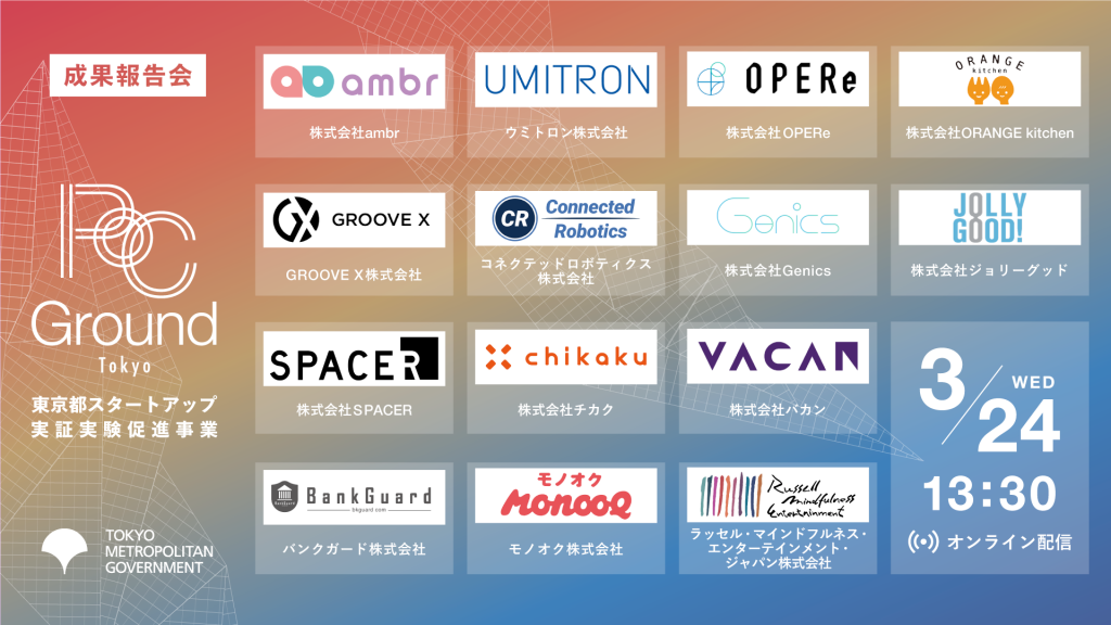 「スタートアップ実証実験促進事業 (PoC Ground Tokyo)(以下、本事業)」の成果報告会を、3月24日にオンライン配信で開催いたします。